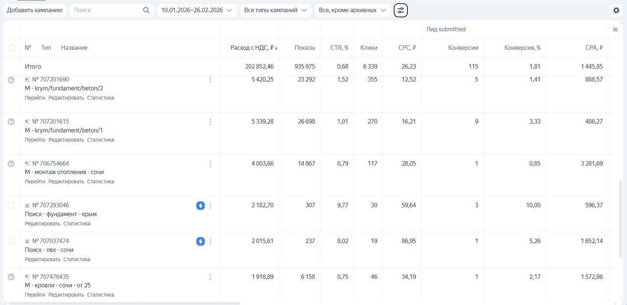 Маркетинг для стройфирм по всей России. С вас бюджет, все сделаю сам, на своих лендингах. С чужими сайтами не работаю.