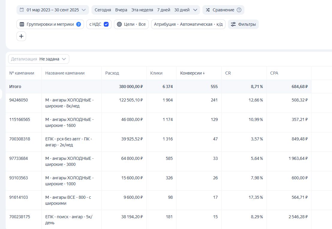 За 6 лет в строительном маркетинге потратил десятки миллионов рублей других стройфирм на тесты, чтобы запустить вам то, что сразу и гарантированно сработает. Для тех, кто хочет сразу запустить 15 стройнаправлений и захватить рынок своего региона. Сэкономьте месяцы на тесты и возьмите готовое решение.