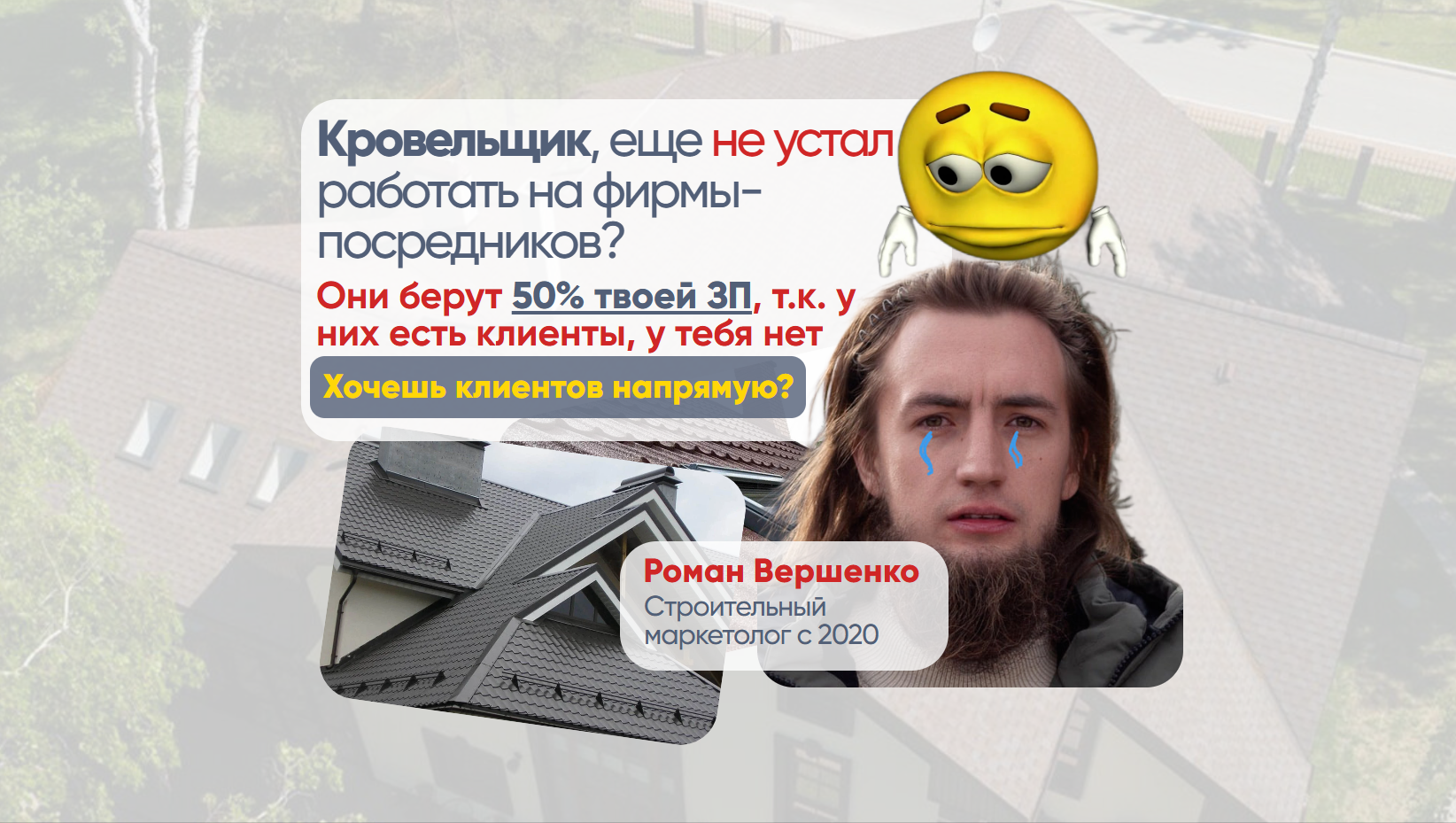Я сразу запускаю рекламу на нужных клиентов, потому что нашел их, ведя ваших коллег-кровельщиков
